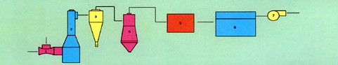 1、 文丘里加料管 2、煅烧炉体 3、一级旋风分离器 4、二级旋风分离器 5、换热器 6、除尘器 7、引风